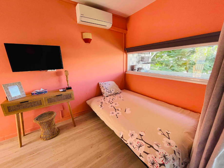 Une chambre climatisée avec lit de 160X200, un canapé convertible de 130X190, la télévision (TNT)